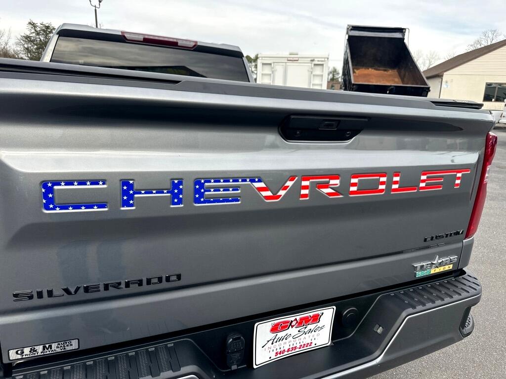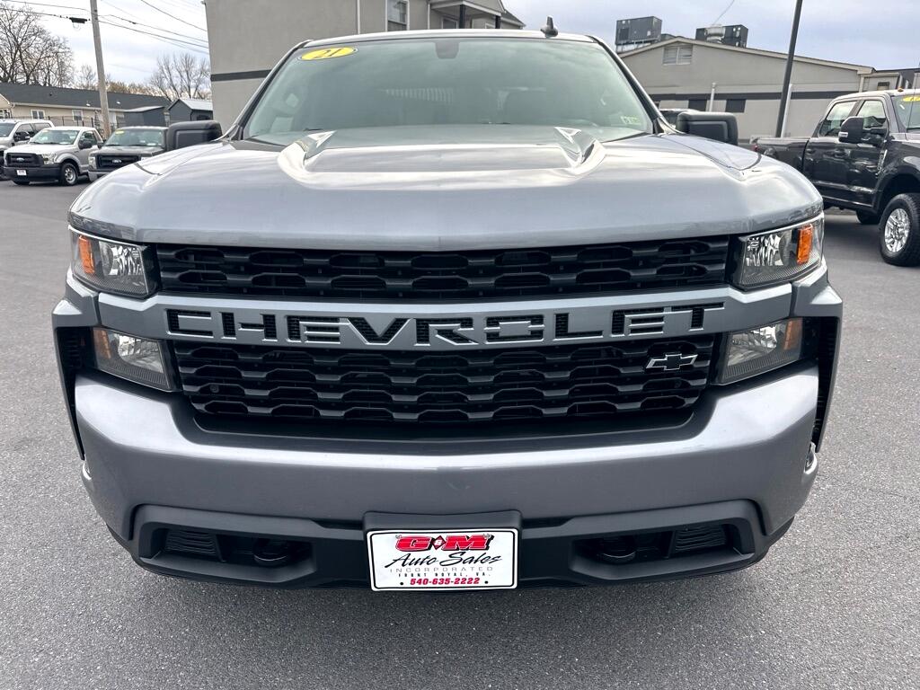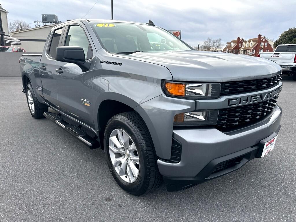 CLEAN CARFAX .. 2021 CHEVROLET SILVERADO 1500 DOUBLE CAB CUSTOM 4X4 .. 2.7 TURBO .. POWER EQUIPMENT .. 40/20/40 BLACK SEAT .. 7 INCH TOUCH SCREEN MEDIA CENTER ,, SIRIUS RADIO .. BACK UP CAMERA .. APPLE CARPLAY .. REMOTE START .. POWER LOCKING TAILGATE .. REAR WINDOW DEFROSTER .. DARK ESSENTIALS PACKAGE .. AUTO LOCKING REAR AXLE .. TRAILER TOW WITH FACTORY BRAKE CONTROL .. 20 INCH WHEELS .. ONLY 49 K MILES