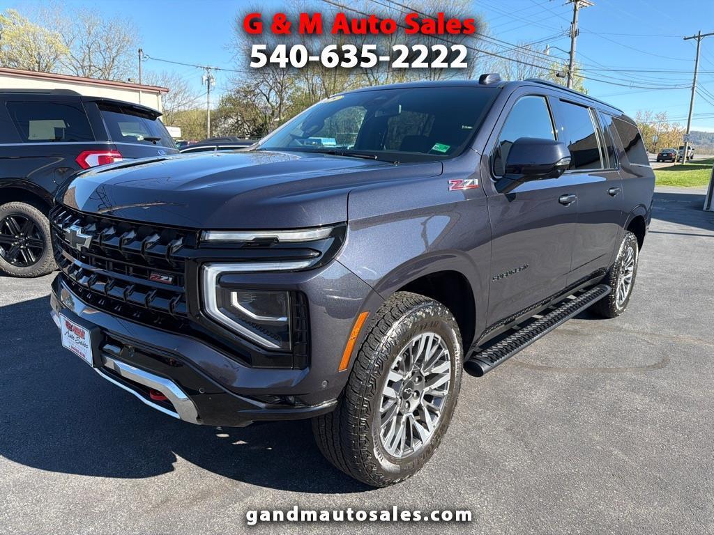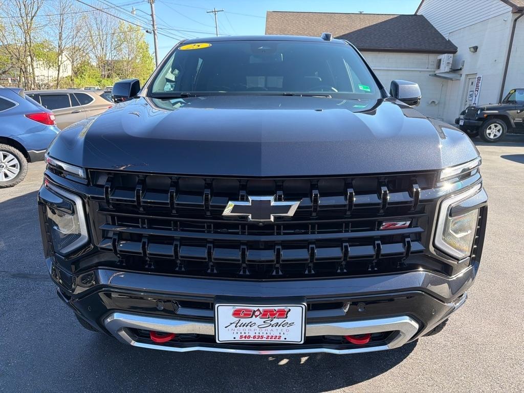CLEAN CARFAX ONE OWNER 2025 CHEVROLET SUBURBAN Z71 DARK ASH METALIC 4X4 .. POWER EQUIPMENT .. MEDIA CENTER BOSS SOUND SYSTEM .. SIRIUS RADIO .. BACK UP CAMERA .. BLACK LEATHER HEATED SEATS .. HEATED STEERING WHEEL .. COMFORT PACKAGE SECOND ROW HEATED SEATS 60/40 BENCH POWER RELEASE .. 3RD ROW POWER FOLD .. TRAILER TOW .. BLACK TUBULAR STEPS .. ONLY 23 K MILES